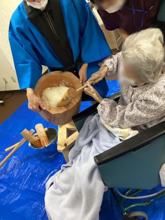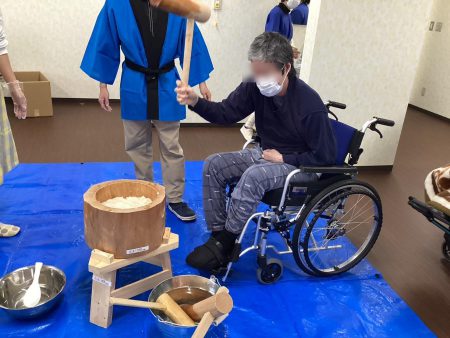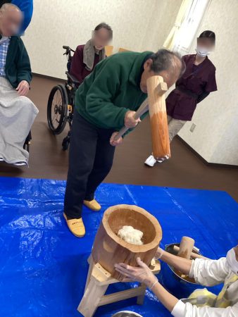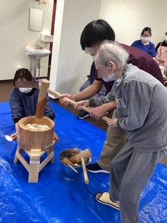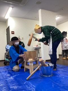 楽しく、餅つきで、機能訓練♬